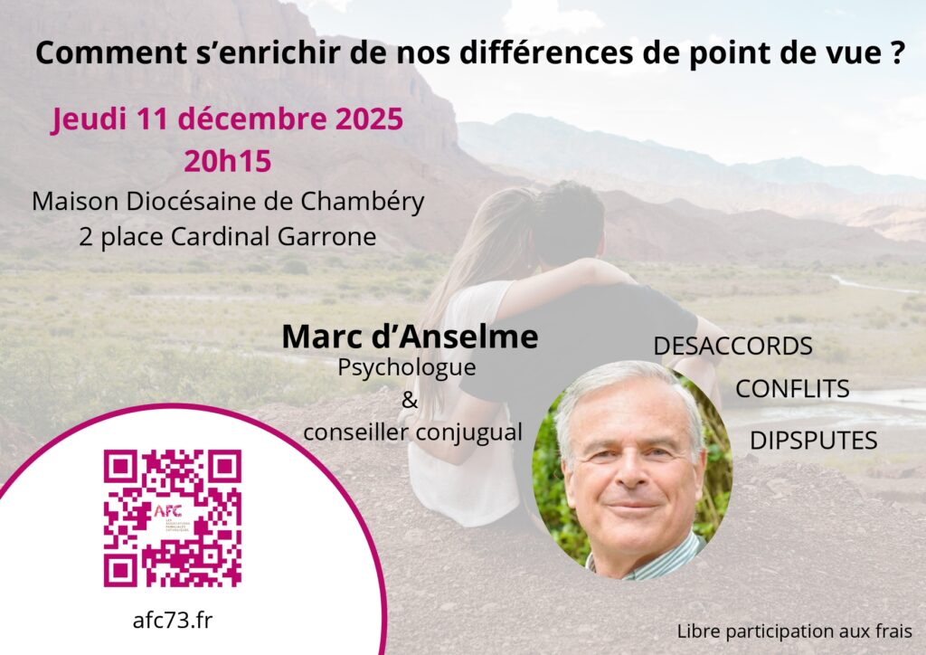 Marc d’Anselme, psychologue et conseiller conjugal, nous éclairera sur une communication adaptée au sein du couple pour devenir des serviteurs “gagnant-gagnant” l’un de l’autre.